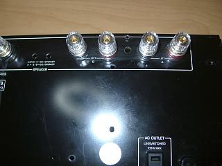 リアパネルを加工し、バナナ対応SP端子に交換します。