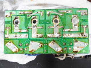 Rチャンネル終段電源ラインの基板パターン焼損。